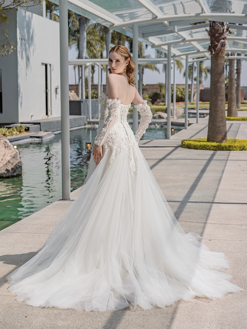 LOTUS es un vestido que te hará sentir como en un cuento de hadas. Es un modelo corte línea A, con un escote palabra de honor y espalda media. Está confeccionado en tul y lleva detalles de flores 3D bordadas que están en tendencia. ¡Es el vestido perfecto para ti!
