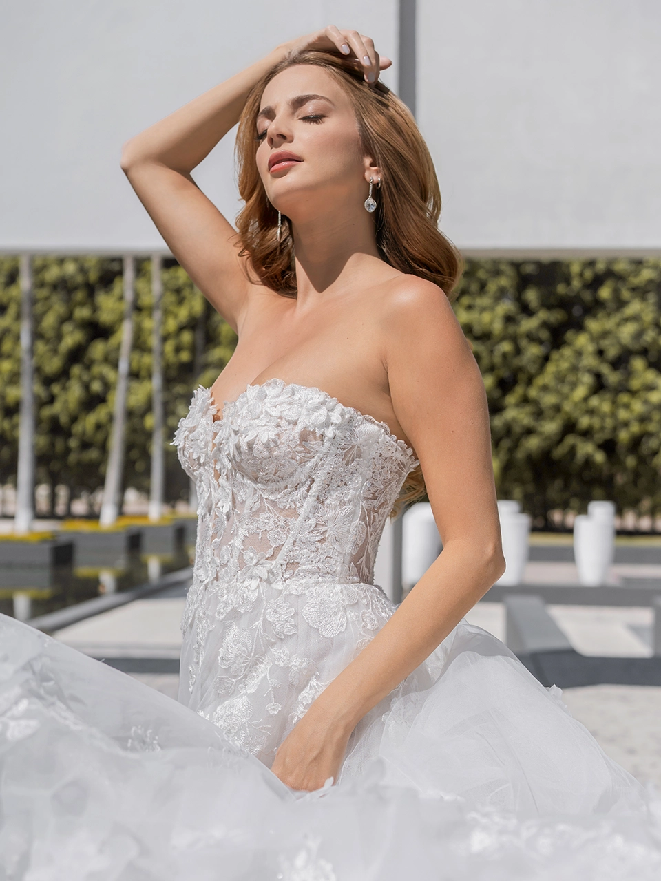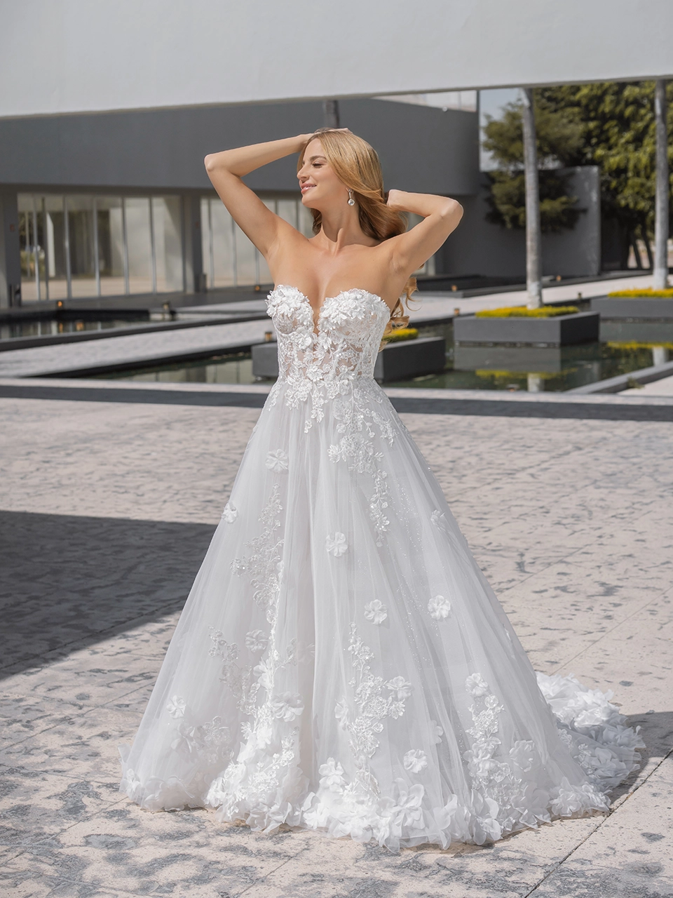 Si deseas verte como protagonista de un cuento de hadas, REVERIE es el vestido para ti. Es un vestido corte línea A, con un escote en forma de corazón. Está confeccionado en tul y lleva una capa de tul glitter que te hará brillar toda la noche. Además de eso, tiene flores 3D y aplicaciones bordadas que te harán lucir como un hada. Es un vestido ideal para una boda de fantasía.